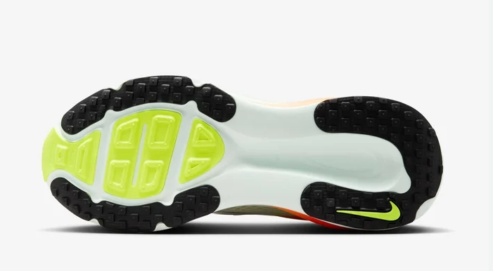 Nike has redesigned the outsole, moving away from the full-length waffle pattern of previous versions. Rubber is concentrated in high-impact zones at the heel and forefoot, with exposed foam in the midfoot to save weight.
